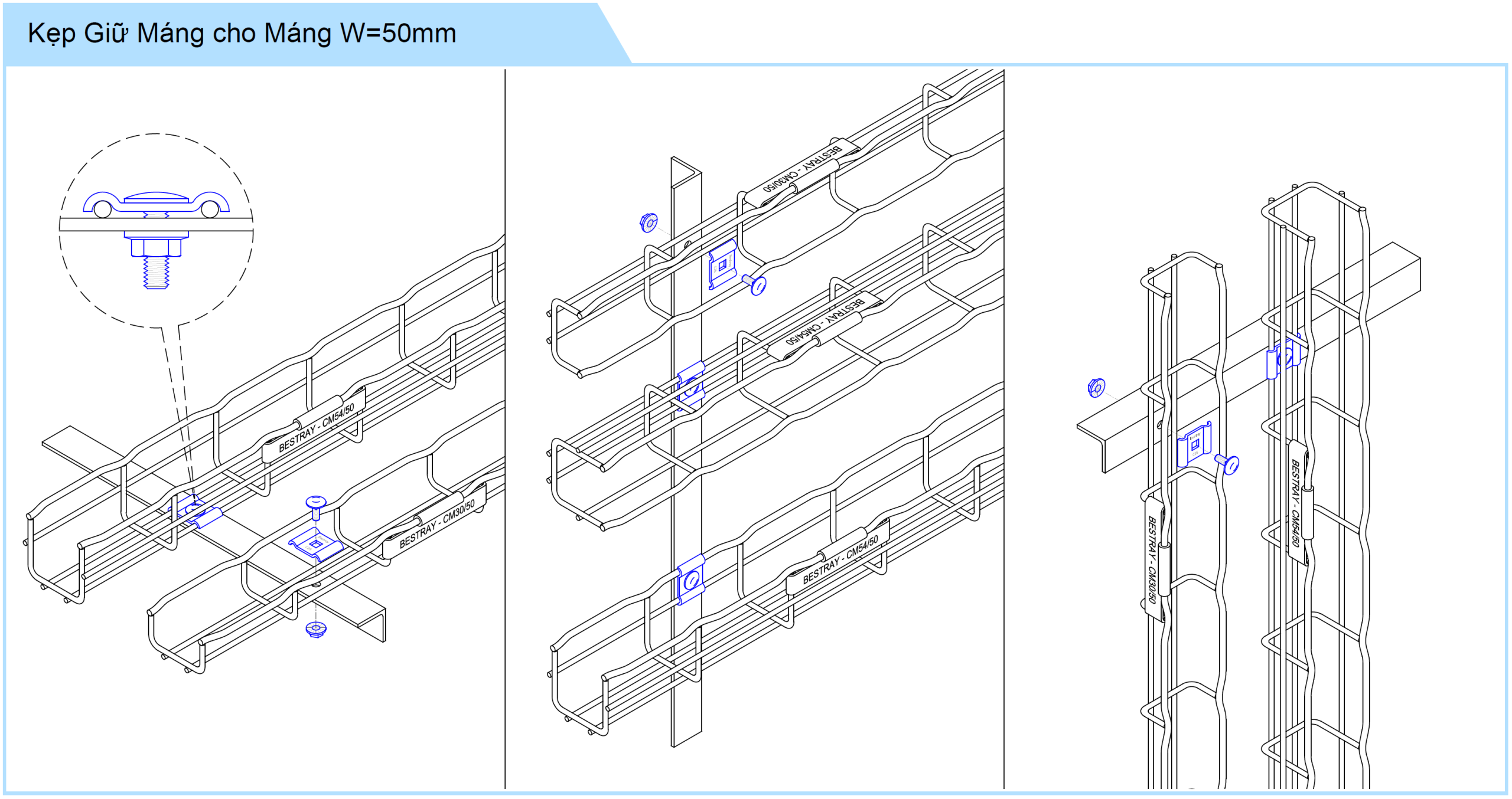 • Kẹp dùng cho máng có độ rộng W = 50mm