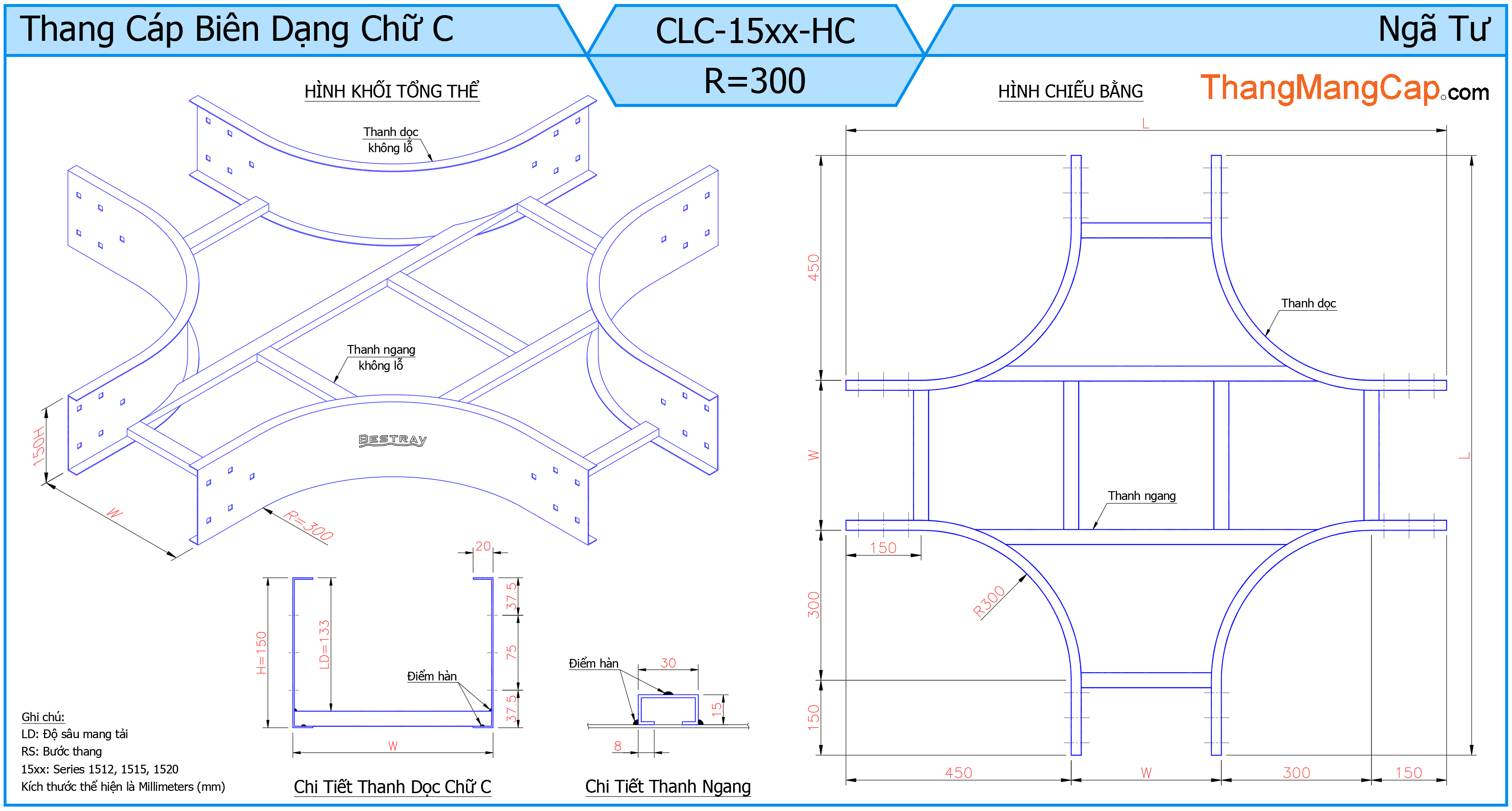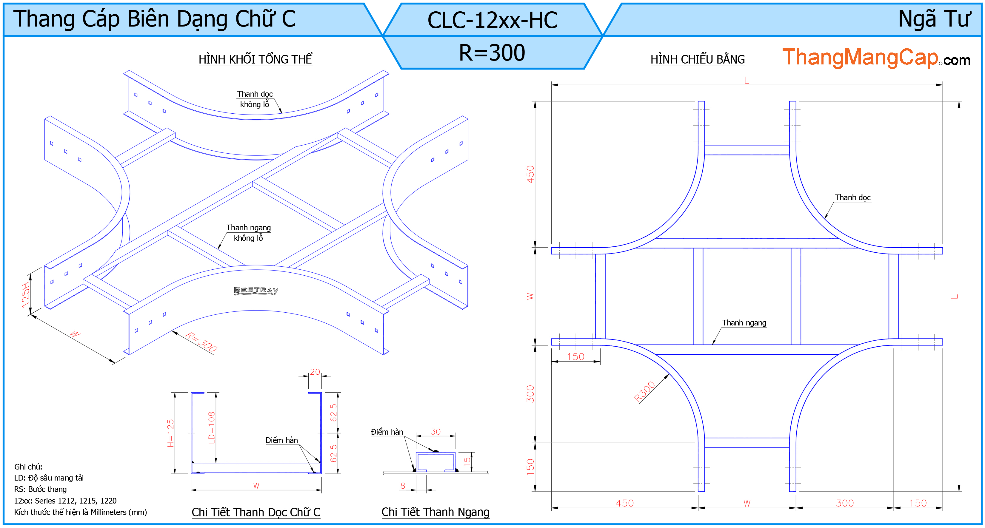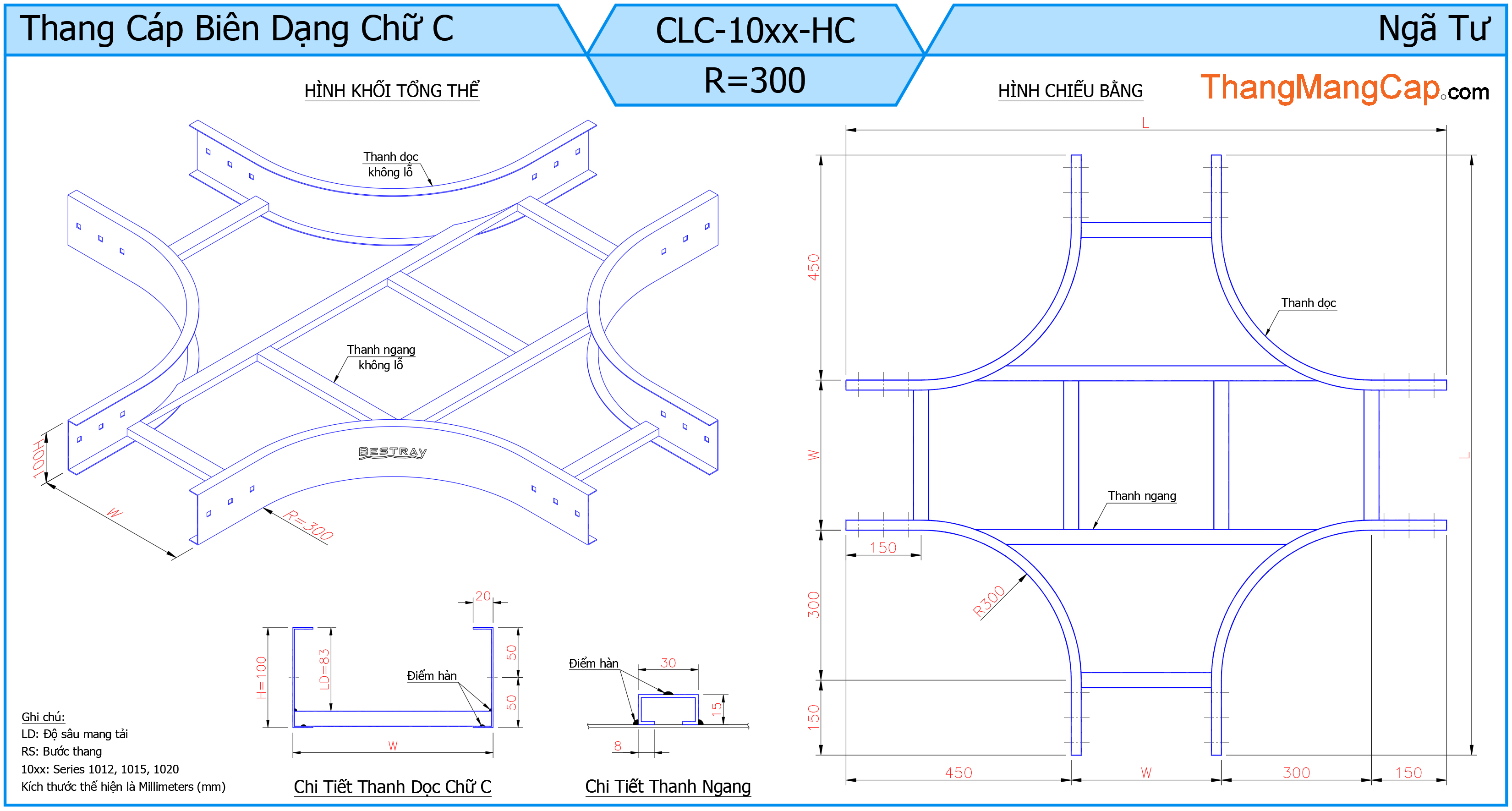 - Cấu tạo linh hoạt, dễ lắp đặt và tương thích với các loại thang cáp CLC cùng kích thước.