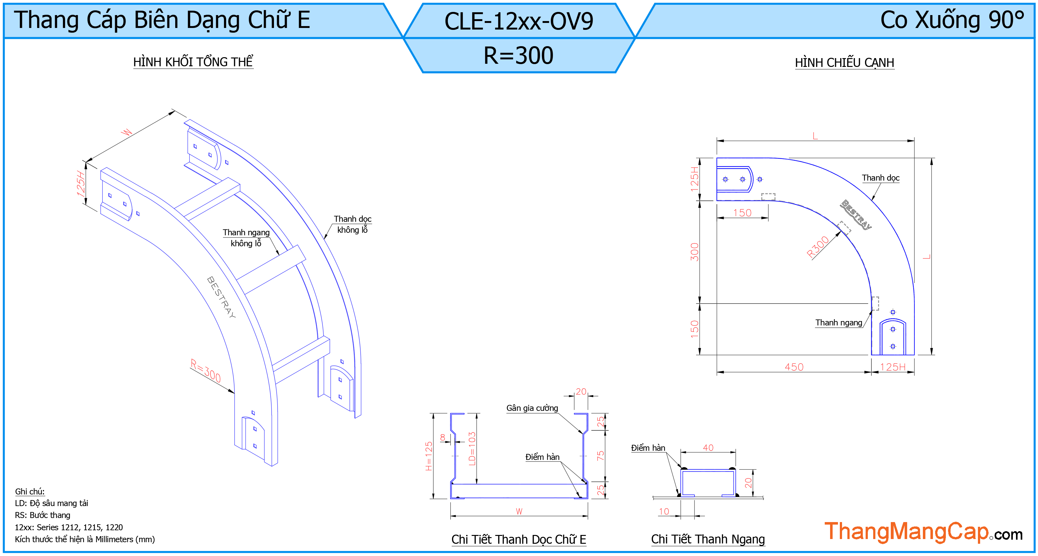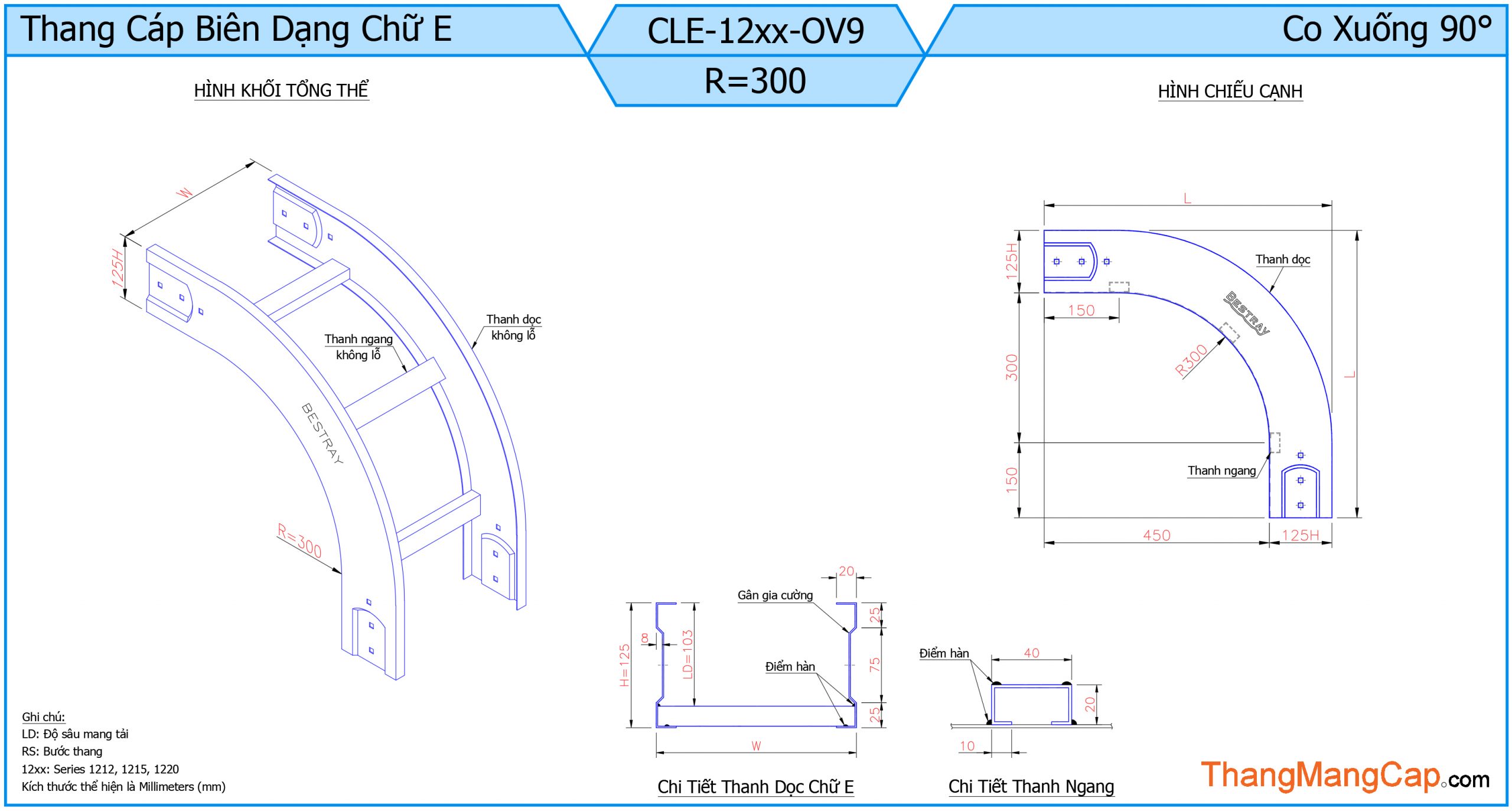 Thang Cáp CLE (Co Xuống 90 Độ) là một phụ kiện trong hệ thống thang cáp dùng để chuyển hướng dây cáp theo chiều thẳng đứng xuống dưới với góc 90 độ. Sản phẩm này thường được sử dụng trong các công trình điện công nghiệp, tòa nhà cao tầng, nhà máy hoặc các hệ thống cơ điện phức tạp.