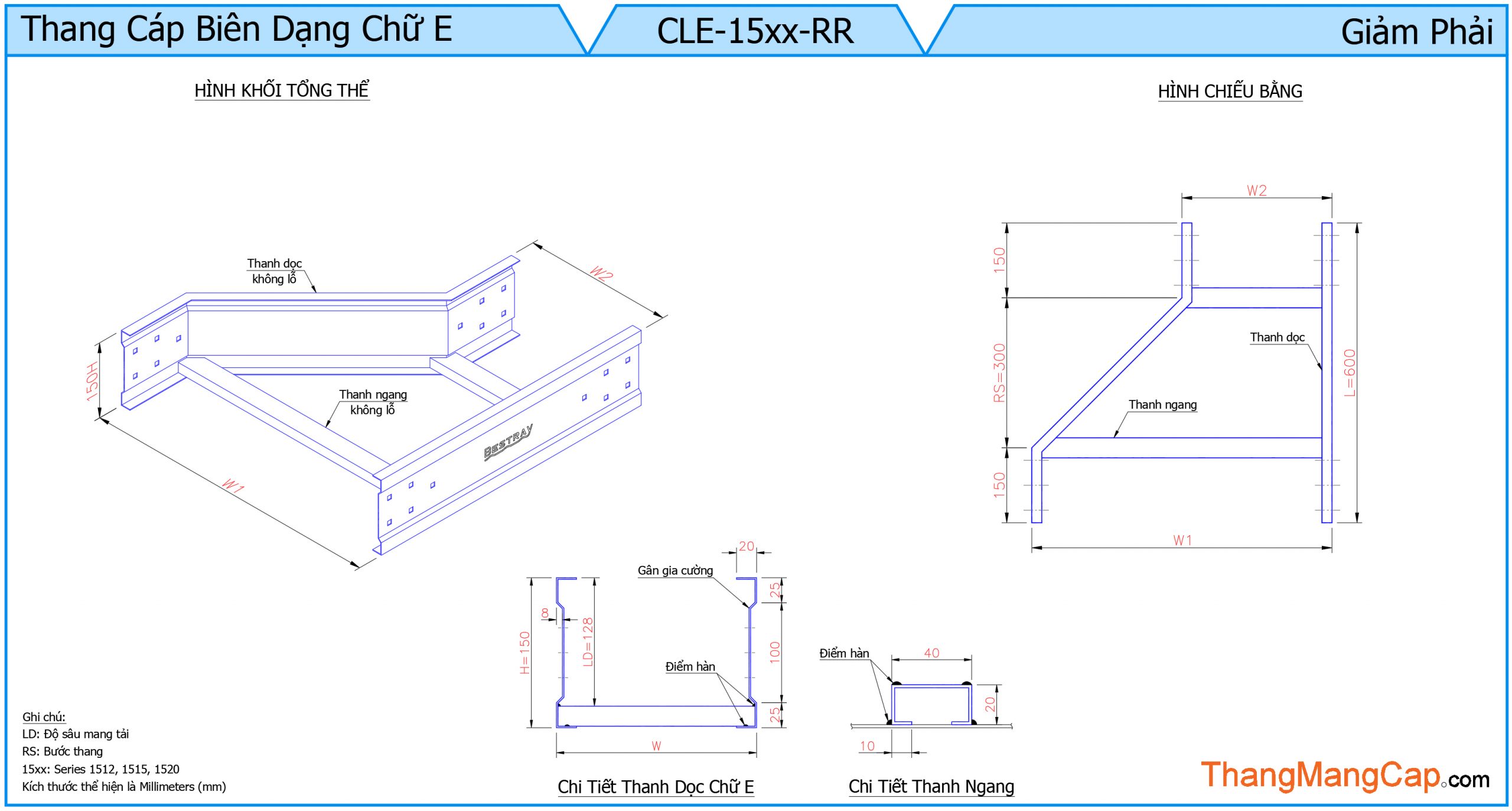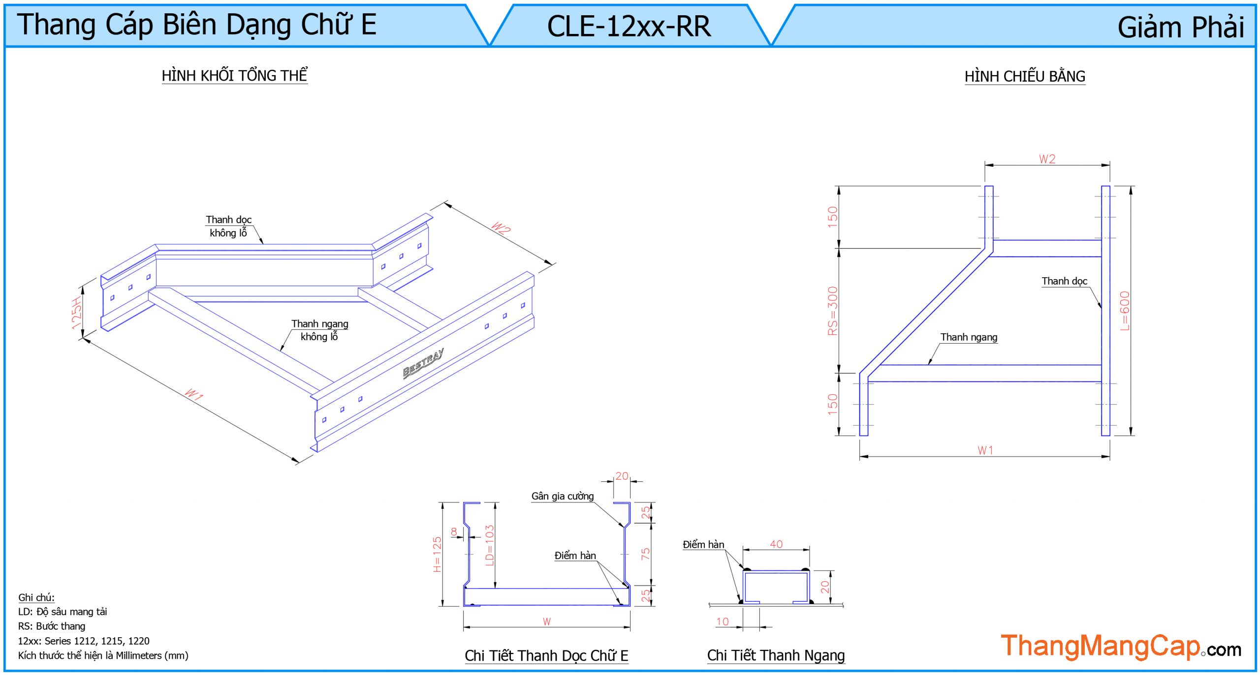 Thang Cáp CLE (Giảm Phải) là một phụ kiện trong hệ thống thang cáp dùng để chuyển tiếp, điều chỉnh hướng đi của cáp điện hoặc cáp mạng theo hướng giảm về bên phải. Sản phẩm được thiết kế với cấu trúc chắc chắn, phù hợp với các yêu cầu kỹ thuật trong thi công hệ thống điện công nghiệp và dân dụng.