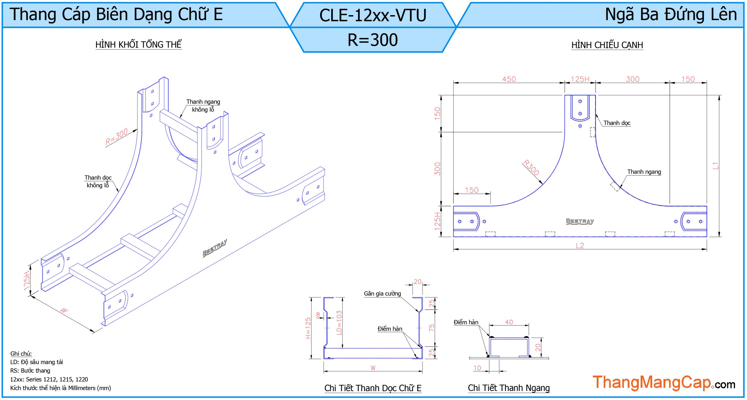 Thang Cáp CLE (Ngã Ba Đứng Lên) là một phụ kiện trong hệ thống thang cáp điện, được thiết kế chuyên biệt để chia hướng đi của cáp theo chiều thẳng đứng hướng lên trên tại vị trí giao nhau hình chữ T.