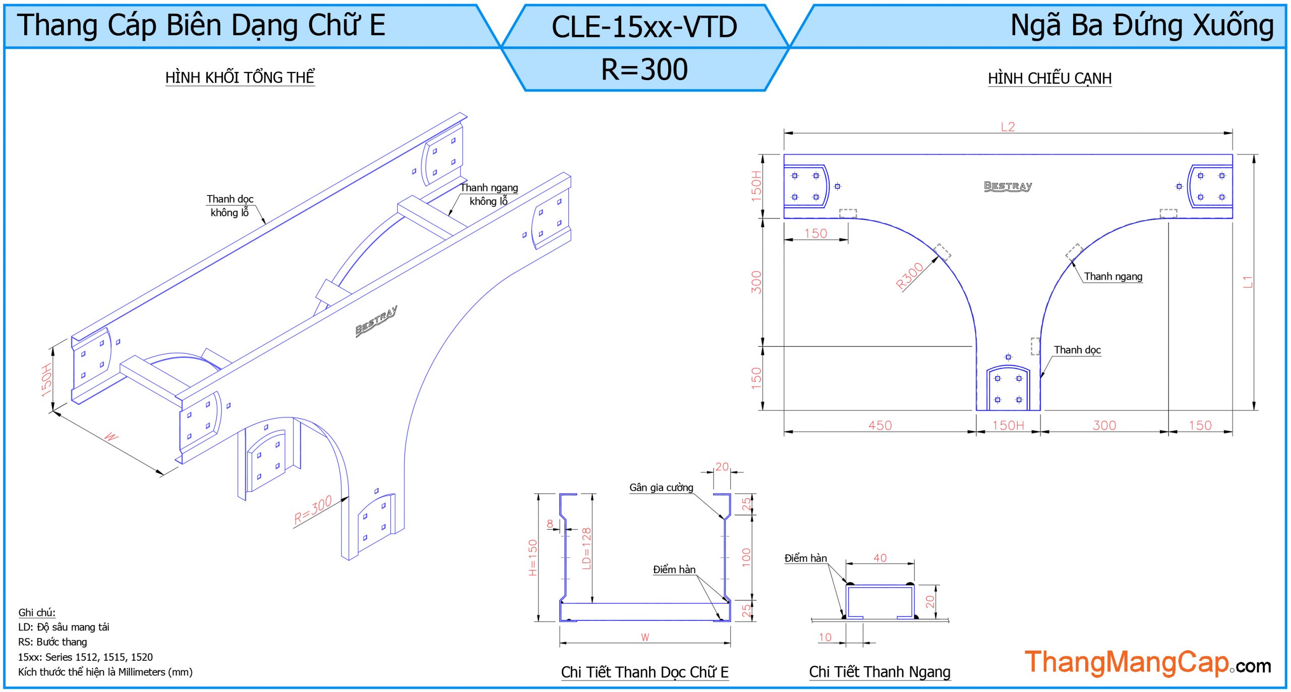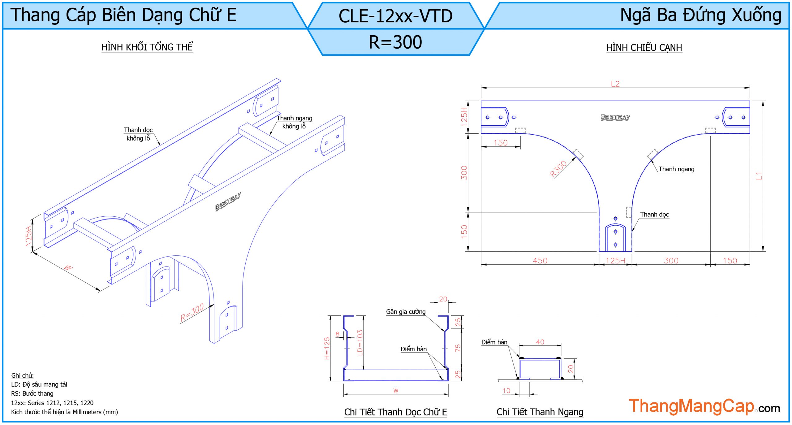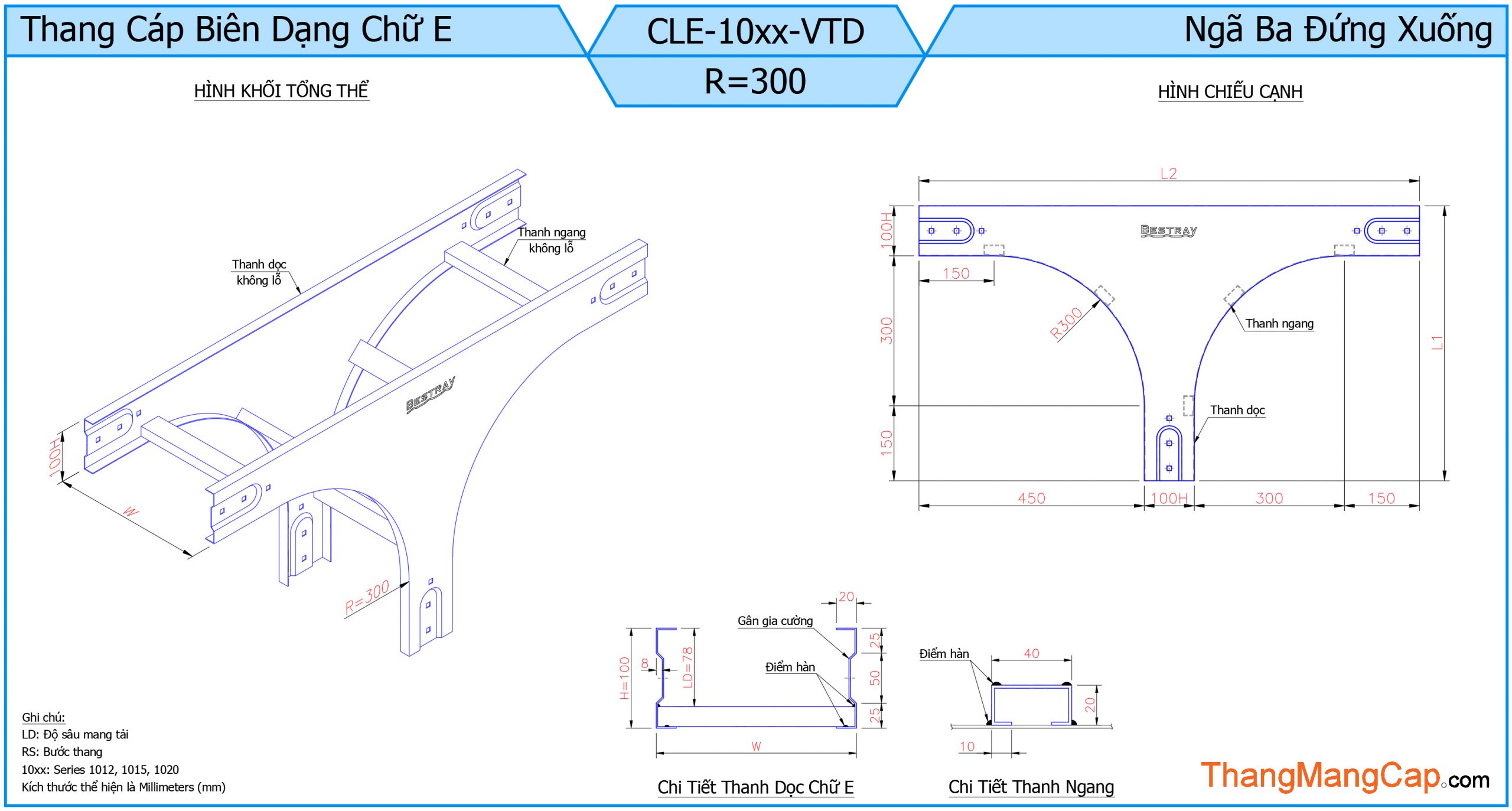 Thang Cáp CLE (Ngã Ba Đứng Xuống) là một trong những phụ kiện quan trọng trong hệ thống thang cáp điện, được thiết kế chuyên dụng để chia hướng đi của dây cáp theo dạng hình chữ T theo chiều thẳng đứng đi xuống.