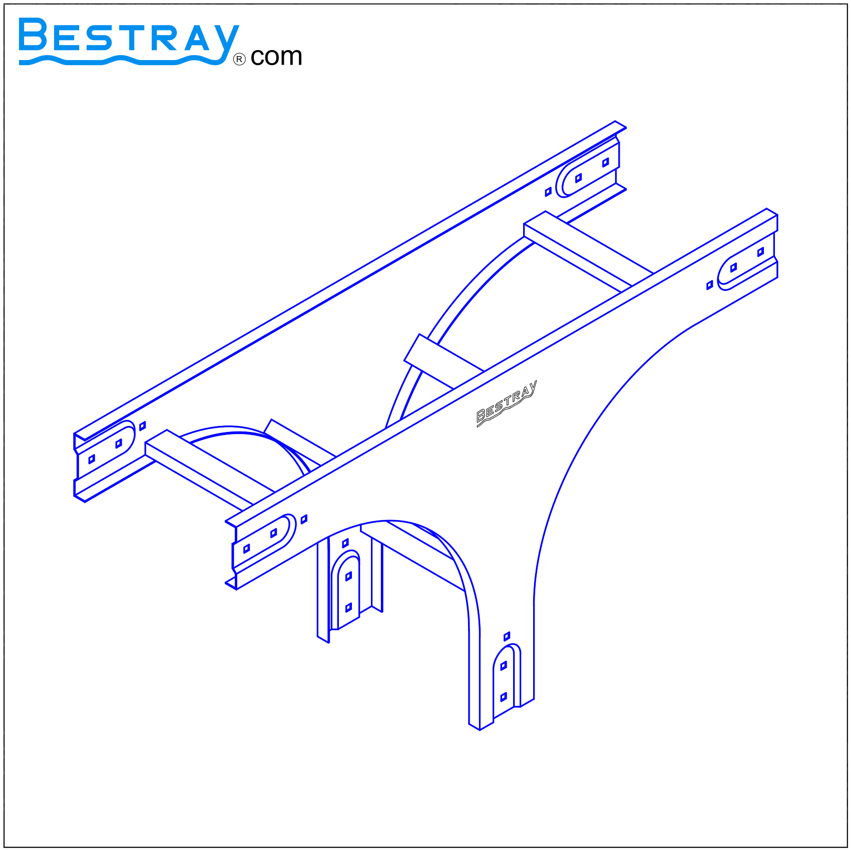 - Chức năng: Cho phép chuyển hướng hệ thống thang cáp từ một nhánh chính sang hai nhánh phụ, trong đó một nhánh đi thẳng, một nhánh rẽ theo hướng đứng xuống.