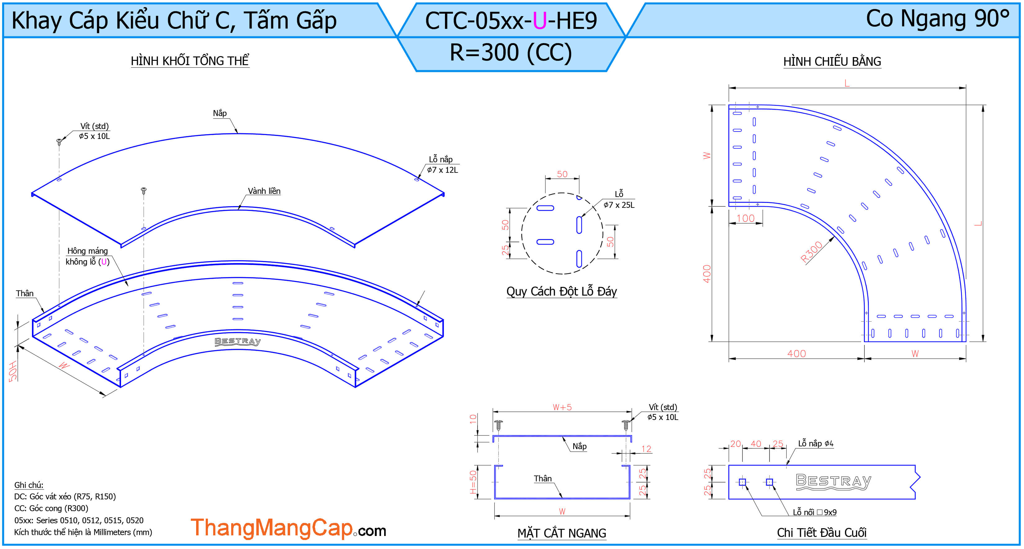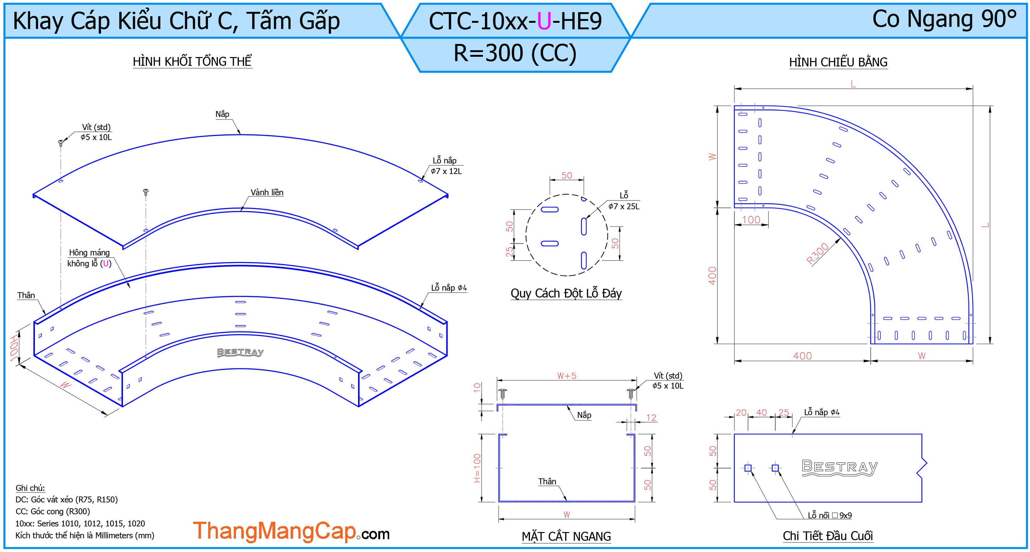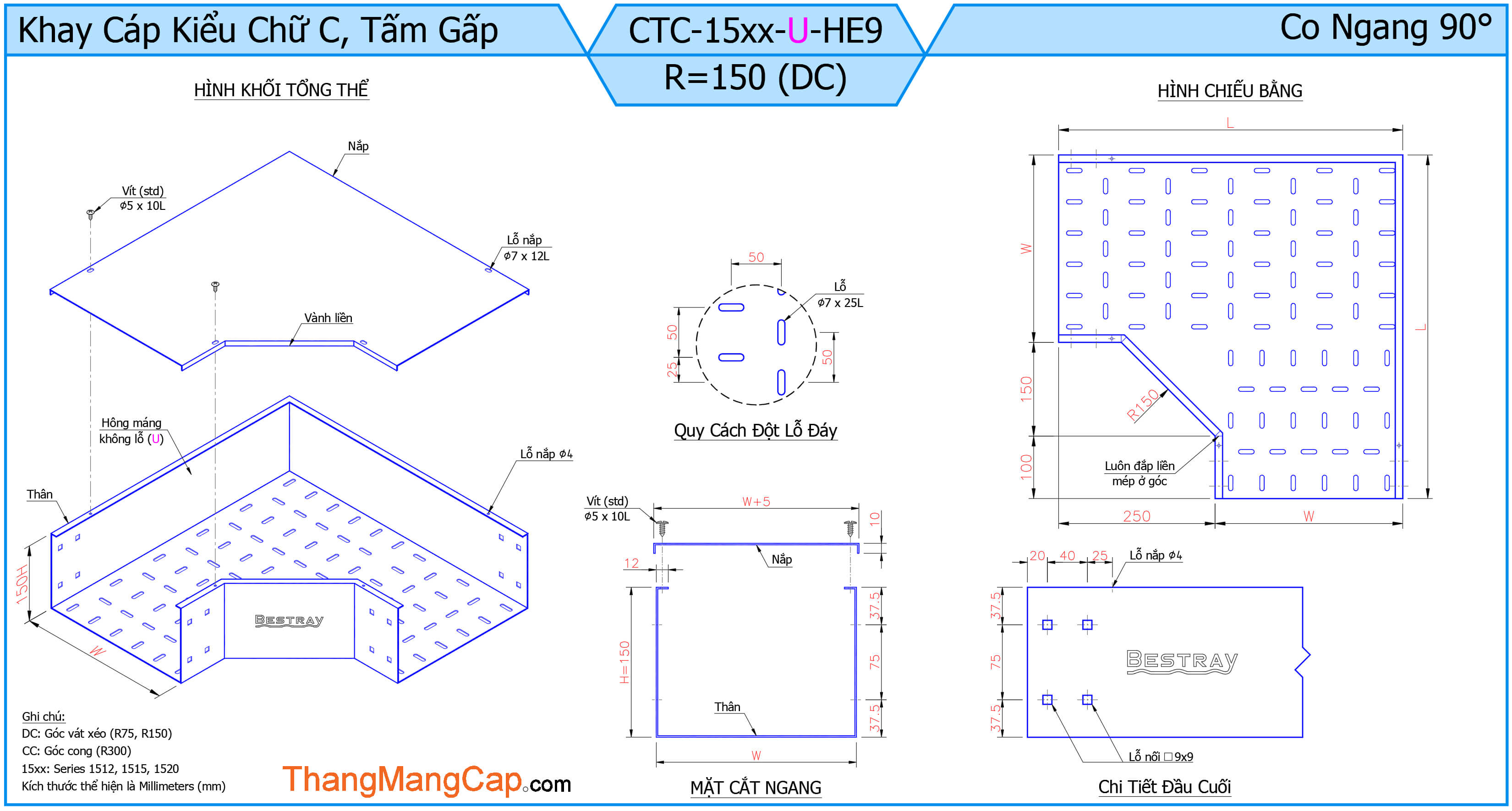 Khay Cáp (Co Ngang 90 Độ) là phụ kiện được sử dụng trong hệ thống khay cáp điện để chuyển hướng đường đi của dây cáp theo góc vuông (90 độ) theo phương ngang. Đây là giải pháp lý tưởng khi cần điều chỉnh hướng đi của khay cáp mà không làm gián đoạn hoặc uốn cong cáp quá mức, đảm bảo an toàn và tính thẩm mỹ cho hệ thống điện.