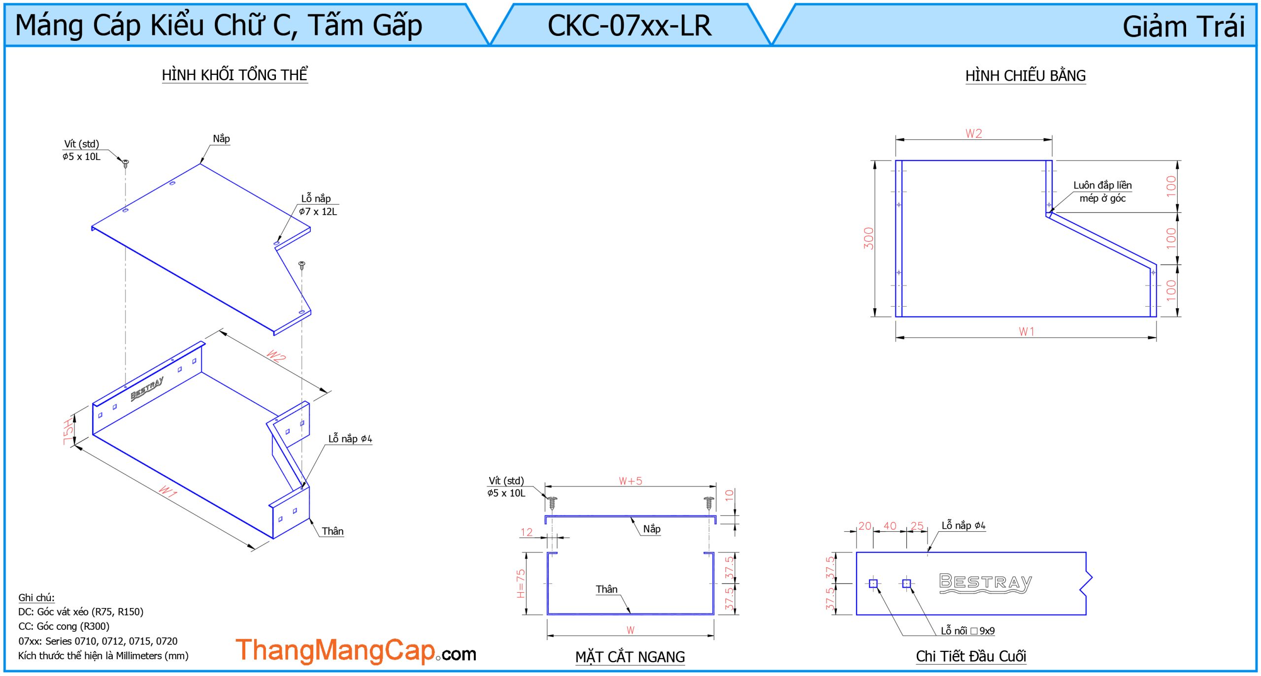 Máng Cáp (Giảm Trái) là một phụ kiện chuyên dụng trong hệ thống máng cáp điện, được thiết kế để chuyển đổi kích thước máng cáp theo hướng bên trái một cách gọn gàng và an toàn. Bộ phận này giúp hệ thống đi dây điện trở nên linh hoạt hơn khi cần thay đổi bề rộng máng để phù hợp với không gian lắp đặt hoặc tải trọng cáp.