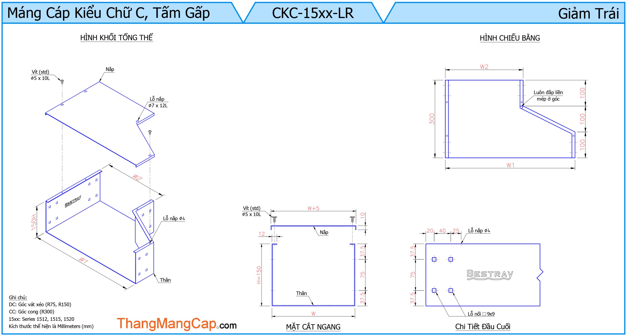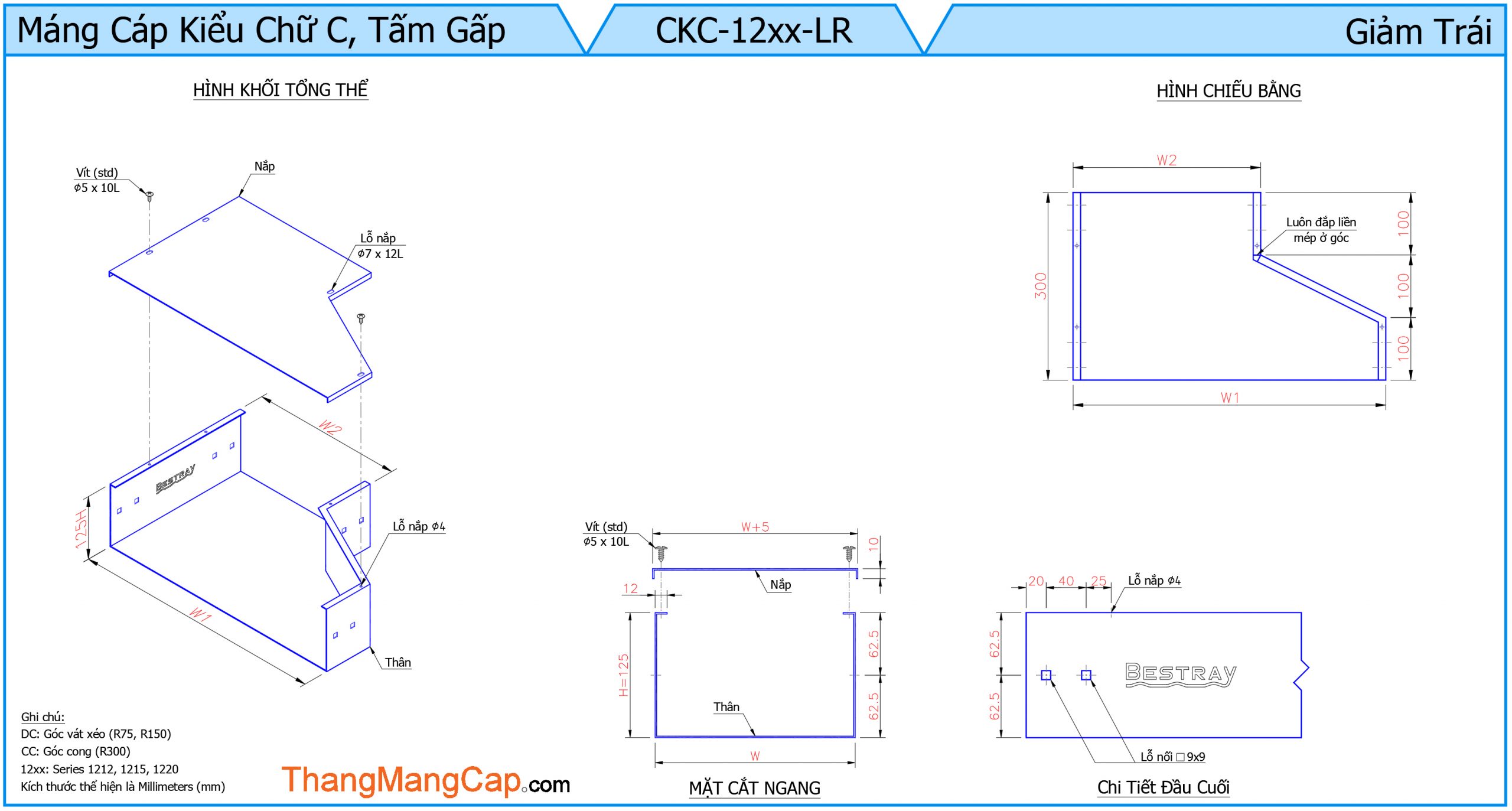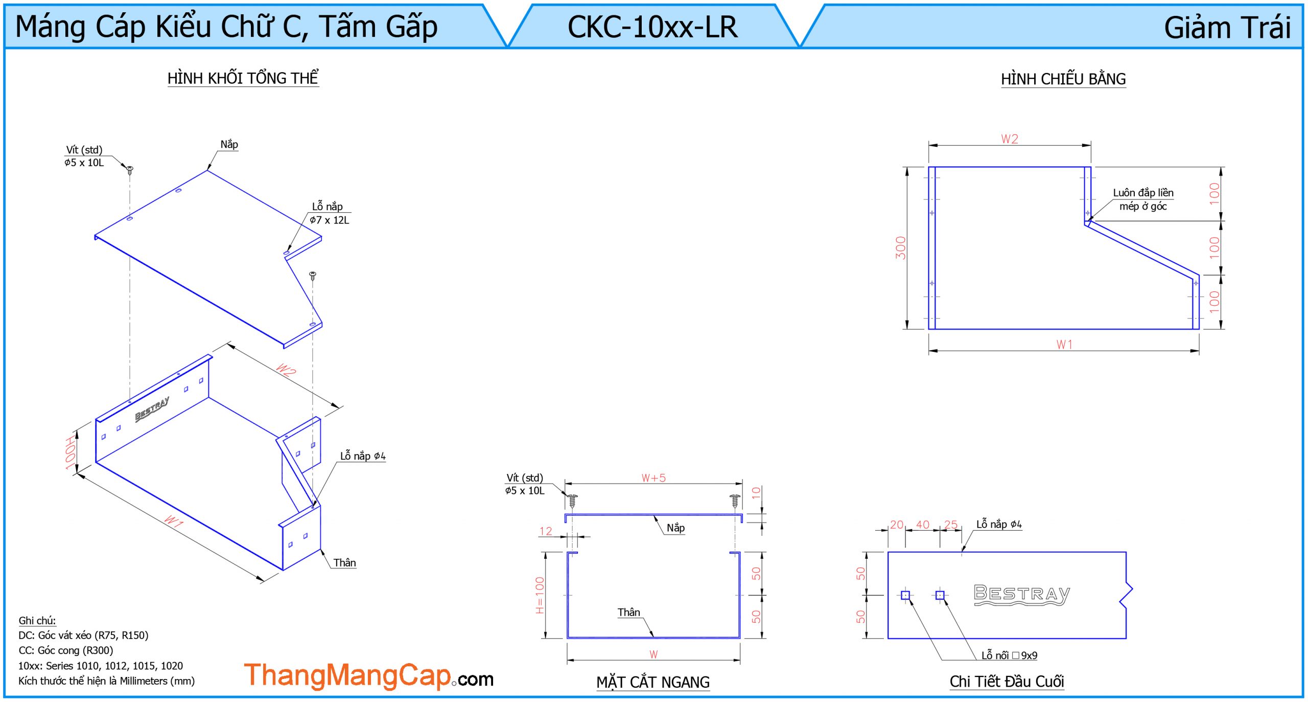 • Thiết kế giảm trái: Phần giảm chuyển dần từ kích thước lớn sang nhỏ về phía bên trái, thuận tiện cho việc bố trí hệ thống cáp trong các khu vực có không gian hạn chế.