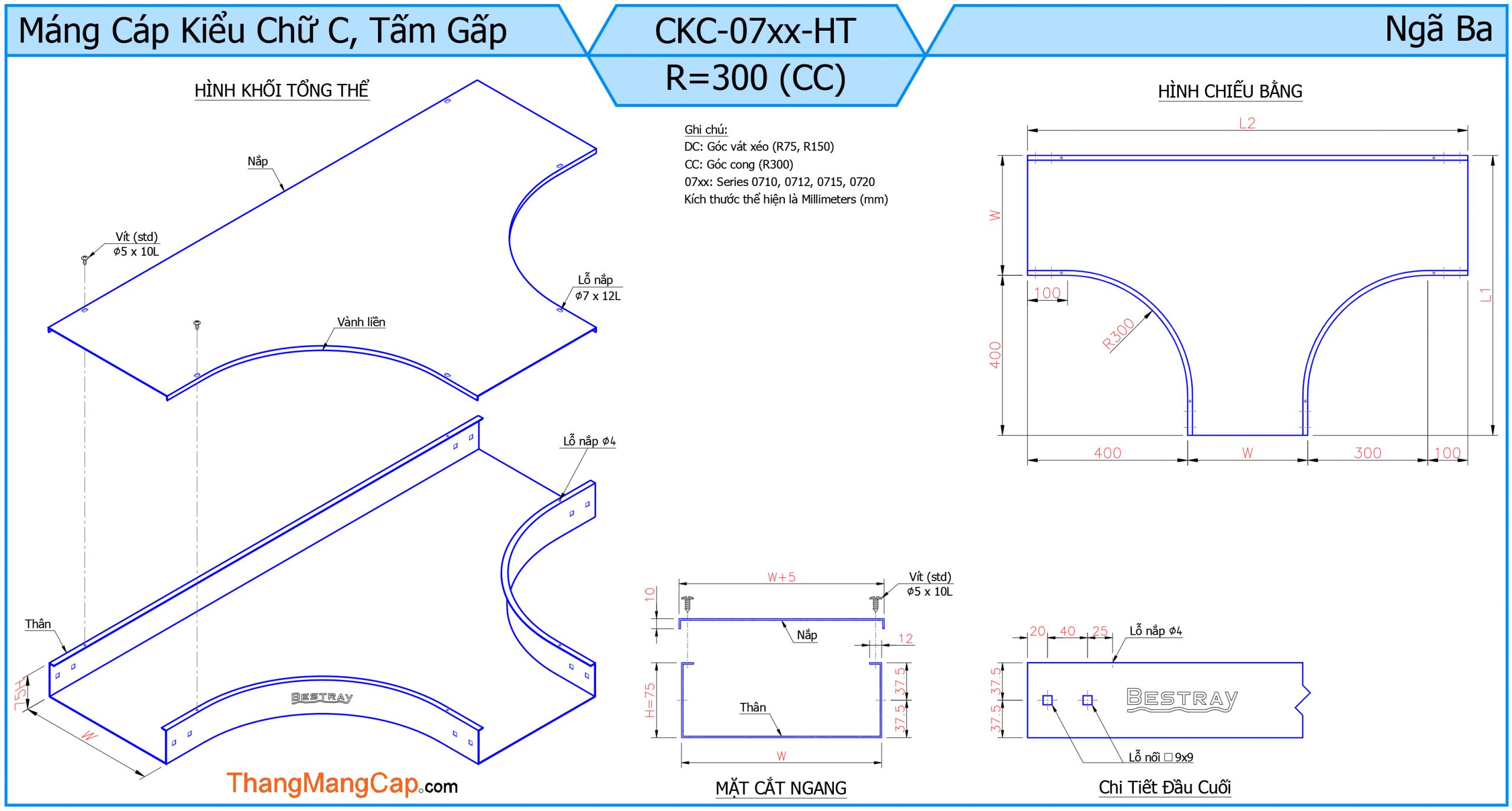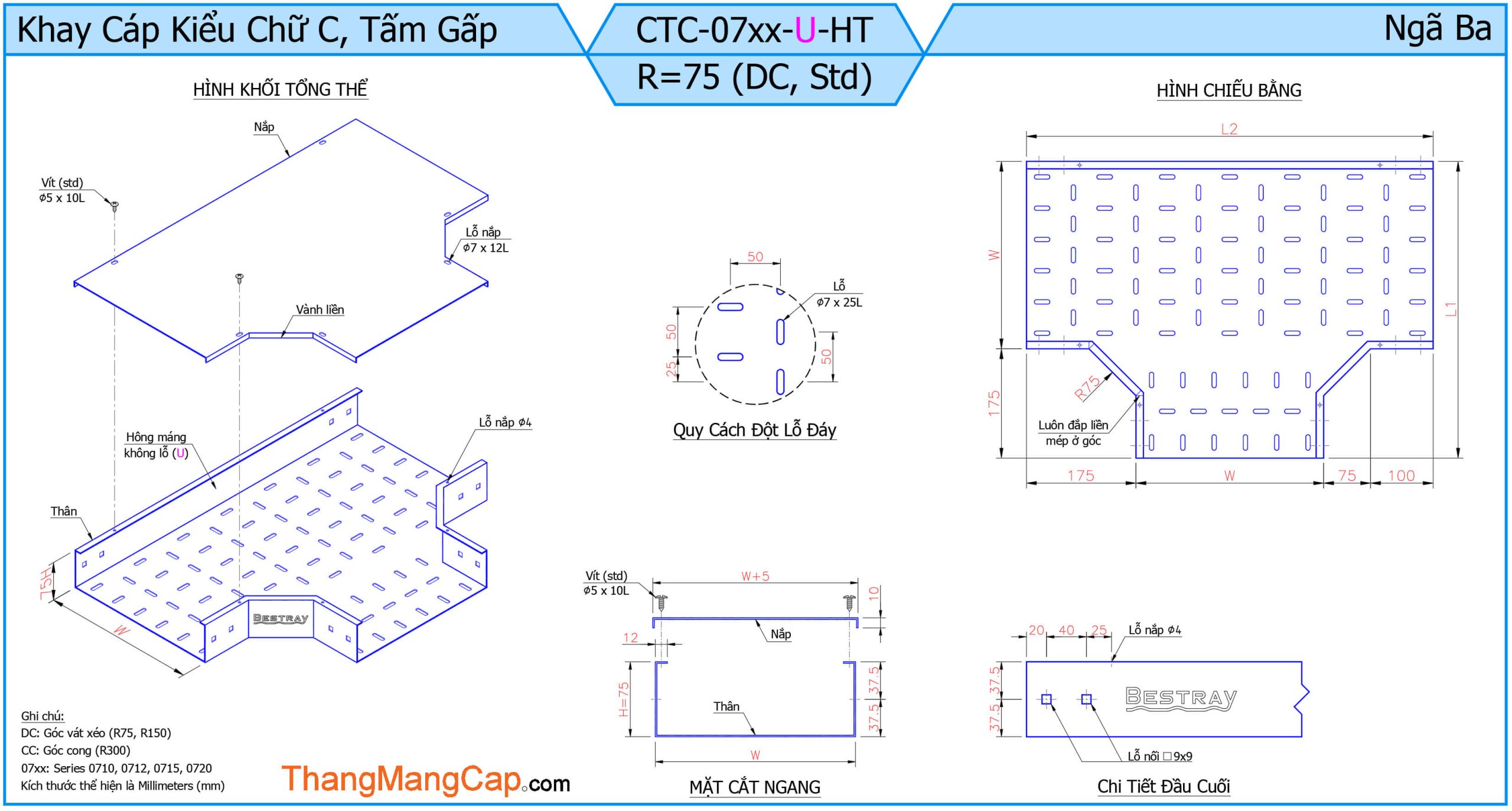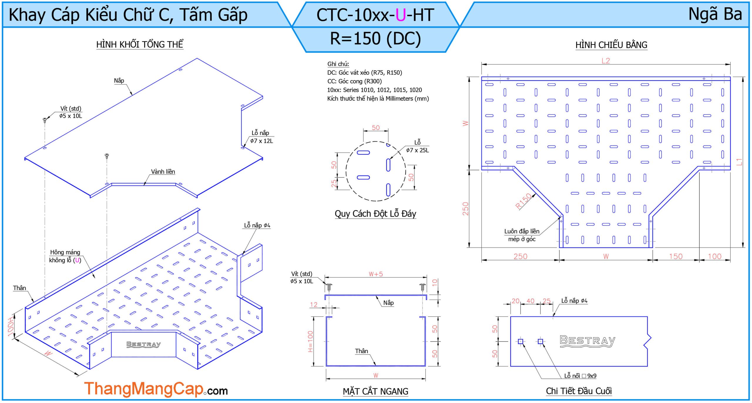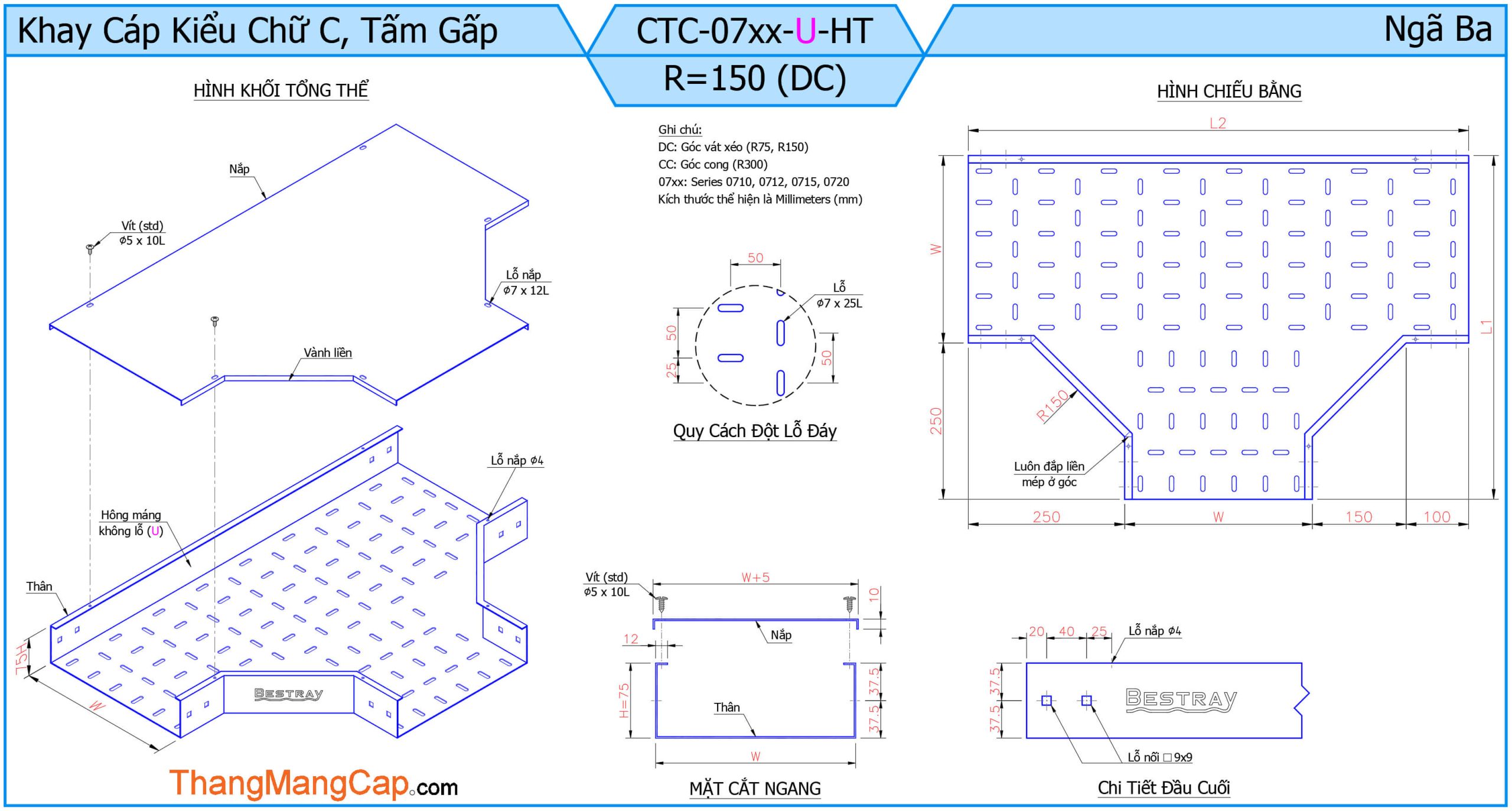 Máng Cáp (Ngã Ba) là một phụ kiện quan trọng trong hệ thống máng cáp điện, dùng để chia nhánh đường đi của cáp theo ba hướng khác nhau (thường là hình chữ T). Thiết bị này giúp tối ưu hóa việc phân phối dây cáp trong các công trình công nghiệp, tòa nhà cao tầng hoặc hệ thống điện phức tạp.