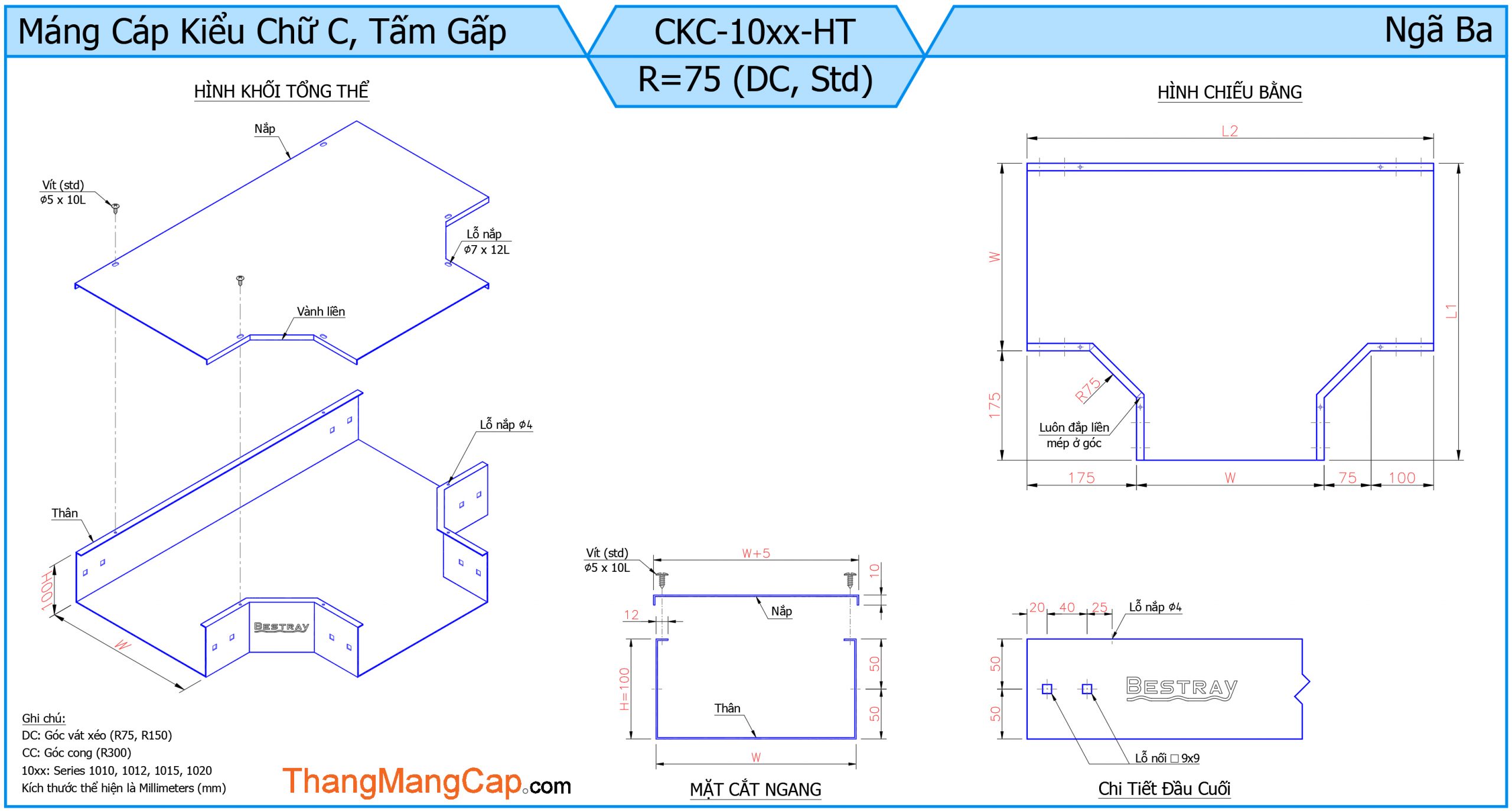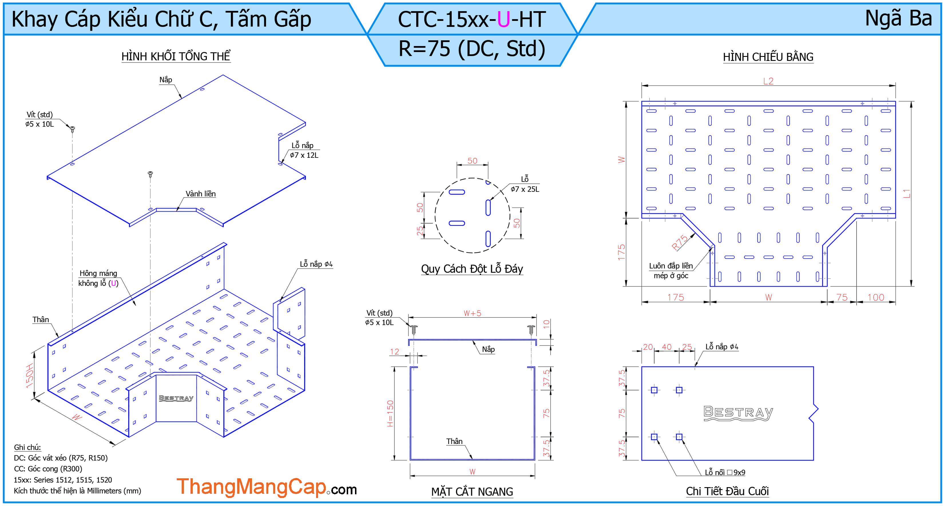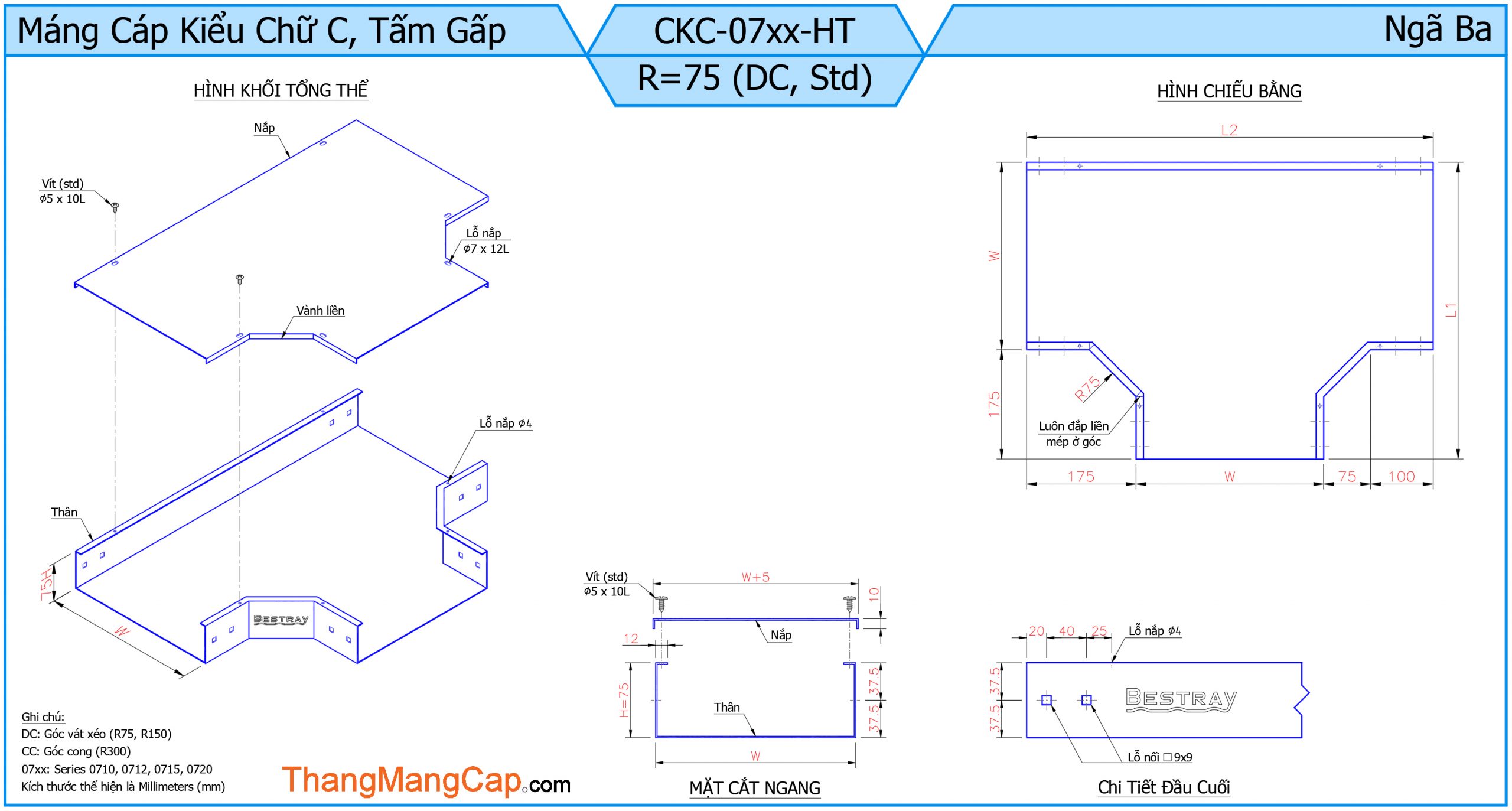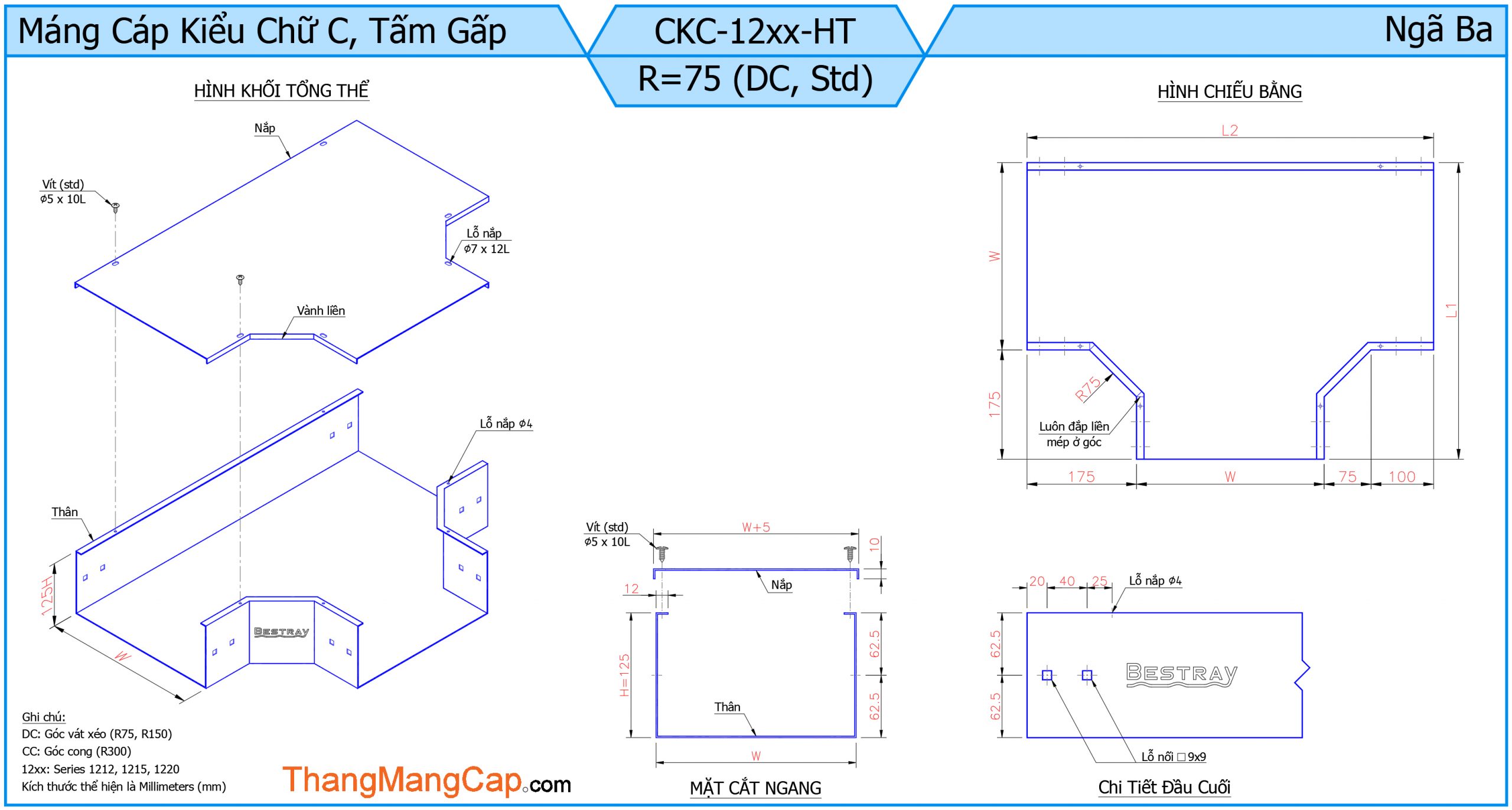 Máng Cáp (Ngã Ba) là một phụ kiện quan trọng trong hệ thống máng cáp điện, dùng để chia nhánh đường đi của cáp theo ba hướng khác nhau (thường là hình chữ T). Thiết bị này giúp tối ưu hóa việc phân phối dây cáp trong các công trình công nghiệp, tòa nhà cao tầng hoặc hệ thống điện phức tạp.