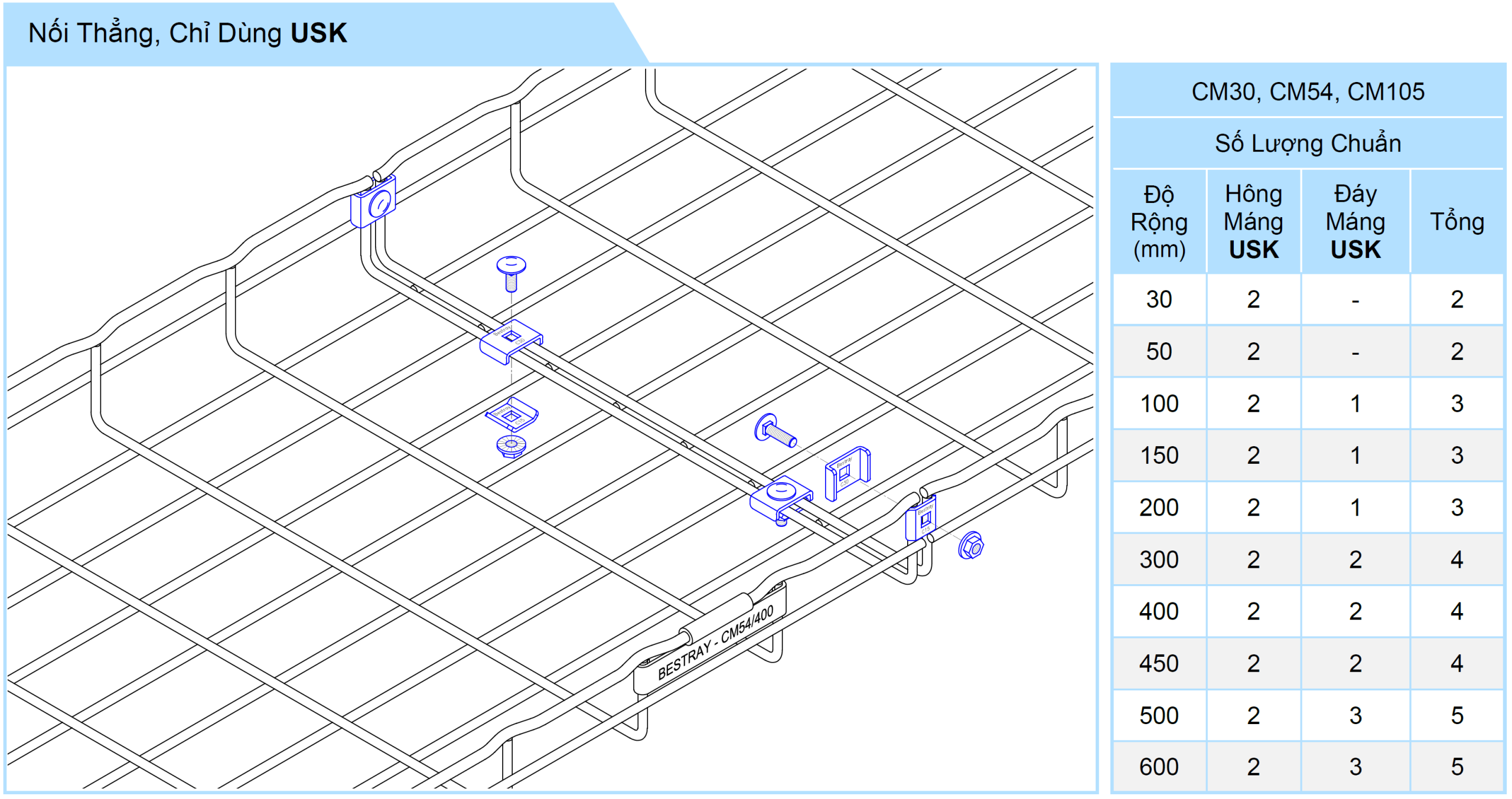 • Dùng để ghép nối linh hoạt 2 máng lưới với nhau, sử dụng cho tải hạng nhẹ